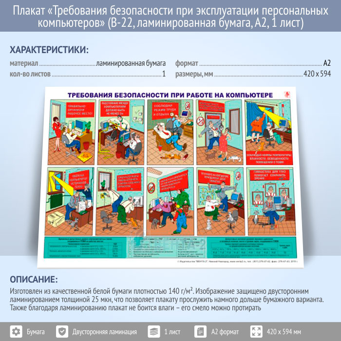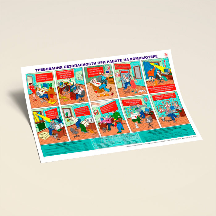 Плакат «Требования безопасности при эксплуатации персональных компьютеров» (В-22, ламинированная бумага, А2, 1 лист) в Тюмени купить