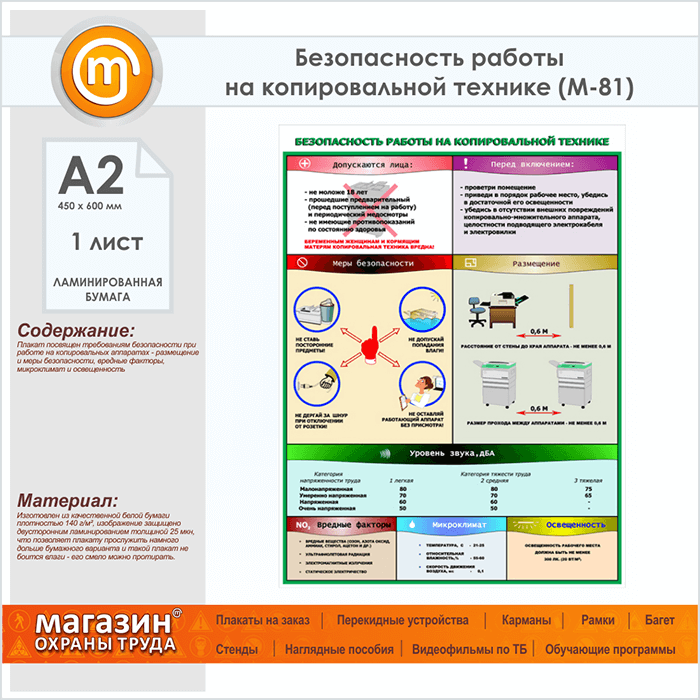 Плакат «Безопасность работы на копировальной технике» (М-81, ламинированная бумага, А2, 1 лист) в Тюмени купить