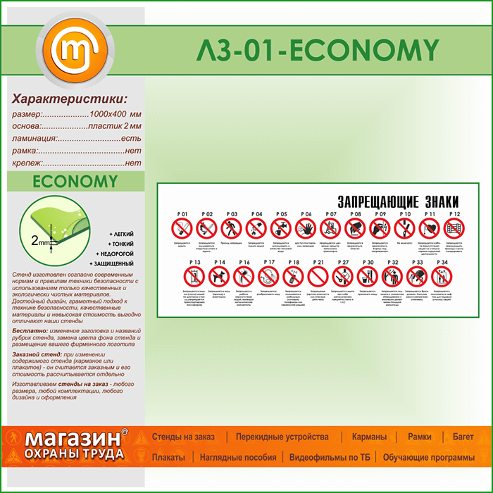Стенд «Запрещающие знаки» (LZ-01-ECONOMY) в Тюмени купить