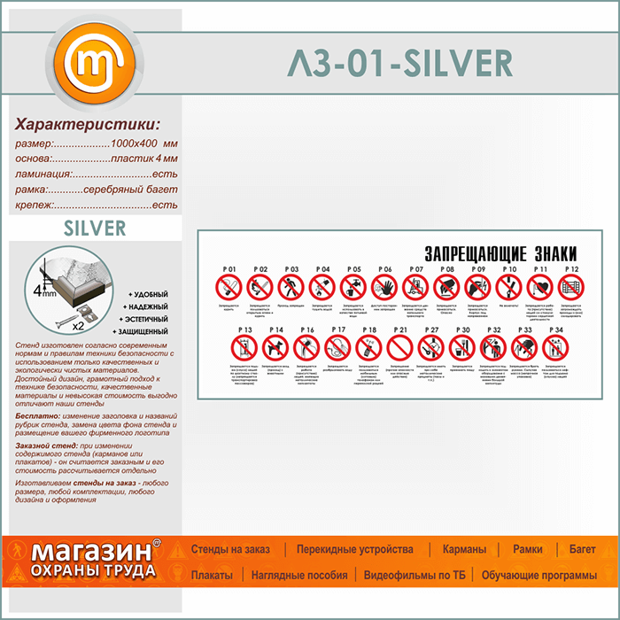 Стенд «Запрещающие знаки» (LZ-01-SILVER) в Тюмени купить
