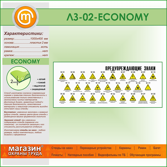 Стенд «Предупреждающие знаки» (LZ-02-ECONOMY) в Тюмени купить