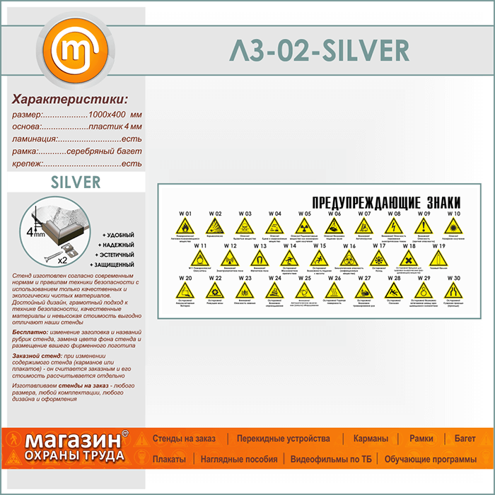 Стенд «Предупреждающие знаки» (LZ-02-SILVER) в Тюмени купить
