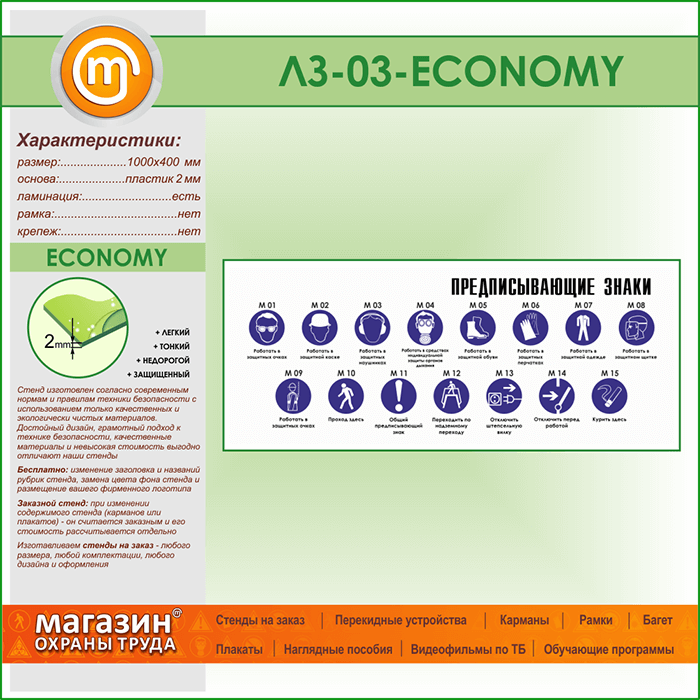 Стенд «Предписывающие знаки» (LZ-03-ECONOMY) в Тюмени купить