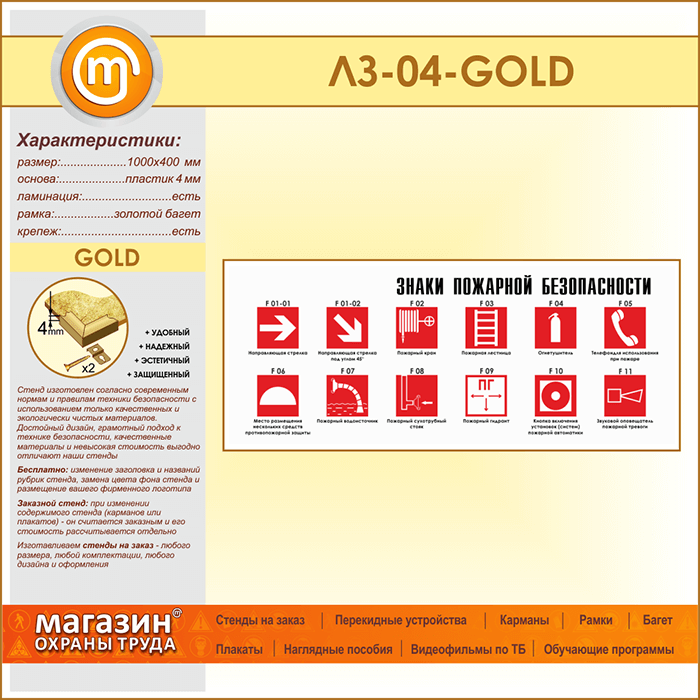 Стенд «Знаки пожарной безопасности» (LZ-04-GOLD) в Тюмени купить