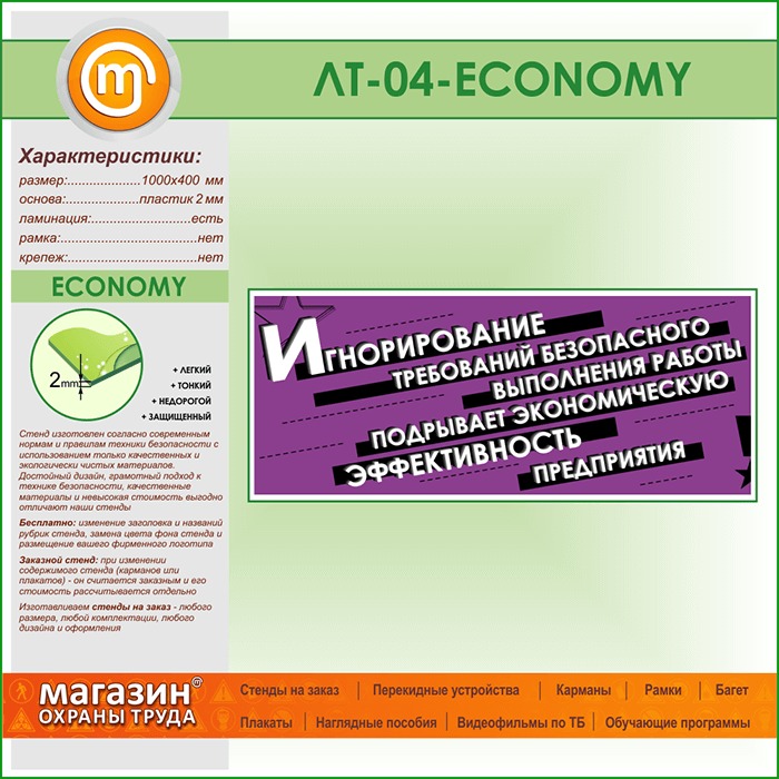 Лозунг «Игнорирование безопасного выполнения работы...» (LT-04-ECONOMY) в Тюмени купить