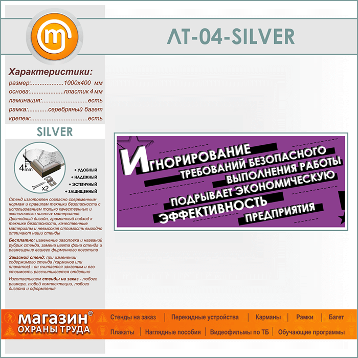 Лозунг «Игнорирование безопасного выполнения работы...» (LT-04-SILVER) в Тюмени купить