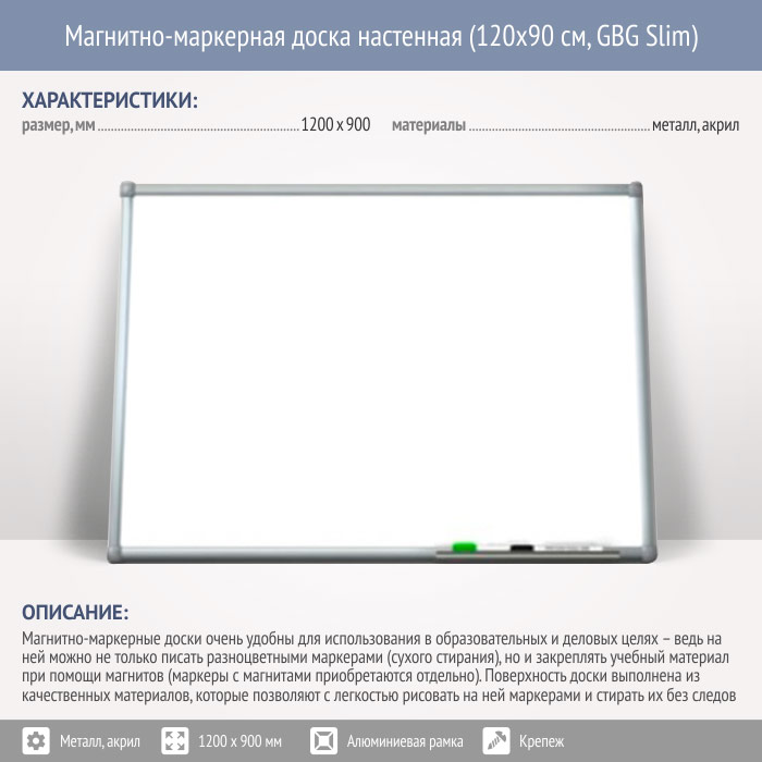 Магнитно-маркерная доска настенная (120x90 см, GBG Slim) в Тюмени купить