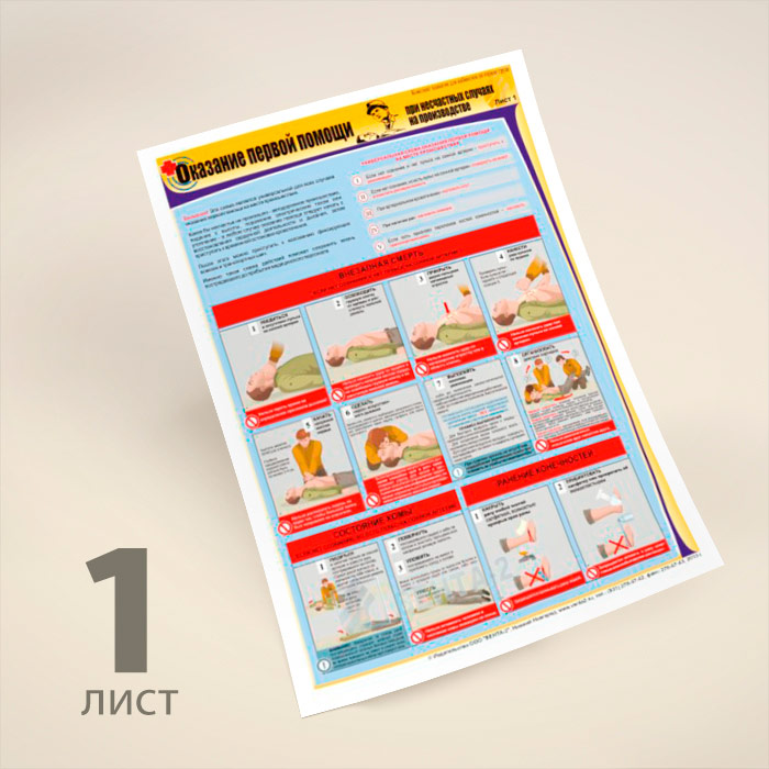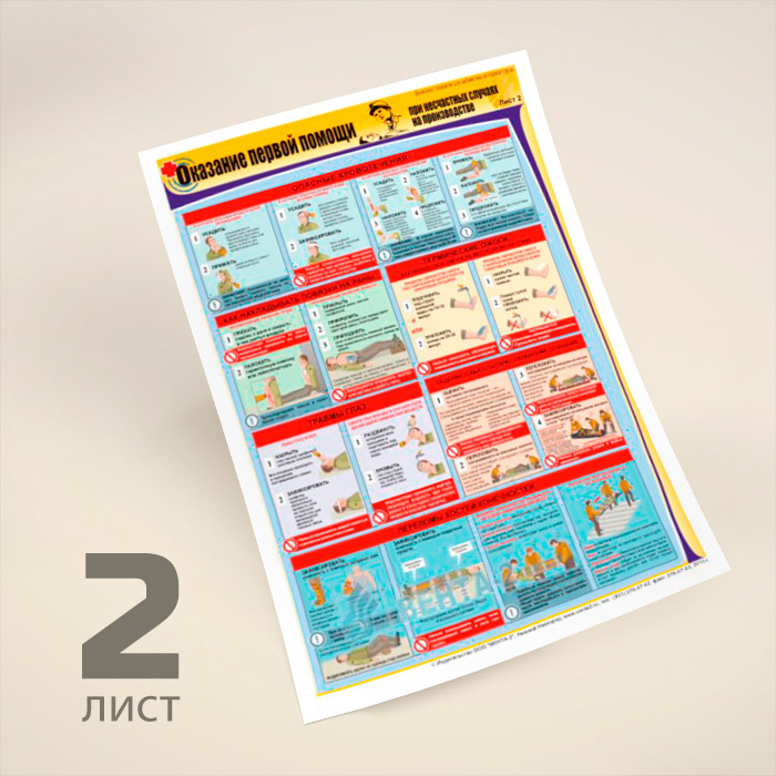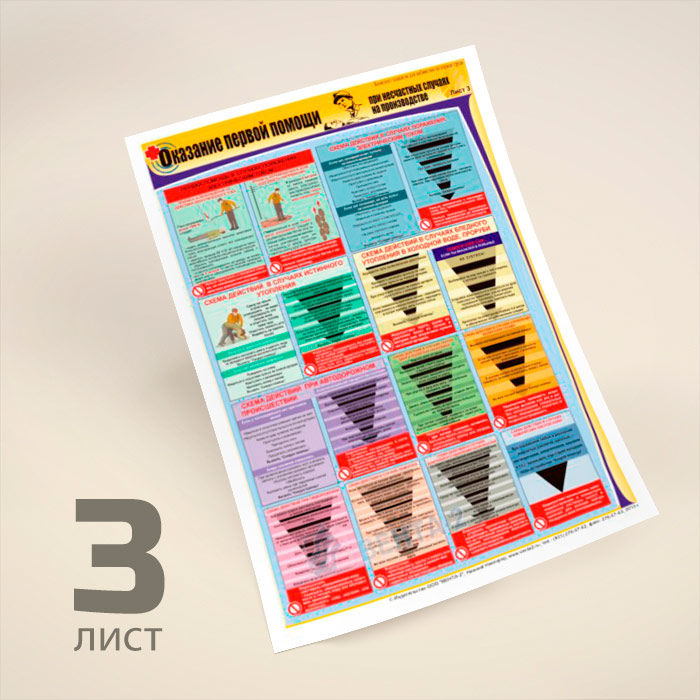 Плакаты «Оказание первой помощи при несчастных случаях на производстве» (В-03, ламинированная бумага, А2, 3 листа) в Тюмени купить