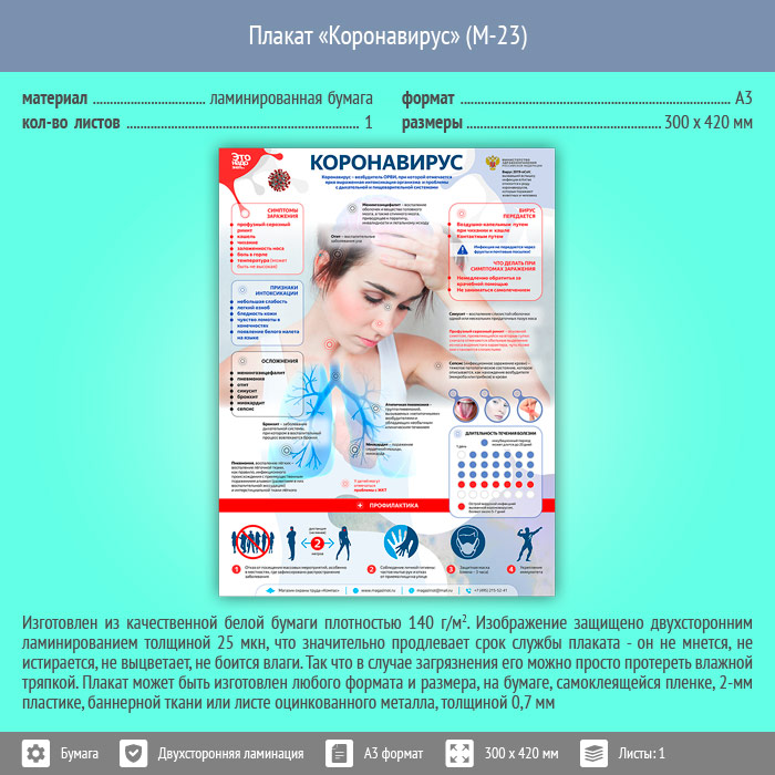 Плакат «Коронавирус» (М-23, ламинированная бумага, А3, 1 лист) в Тюмени купить