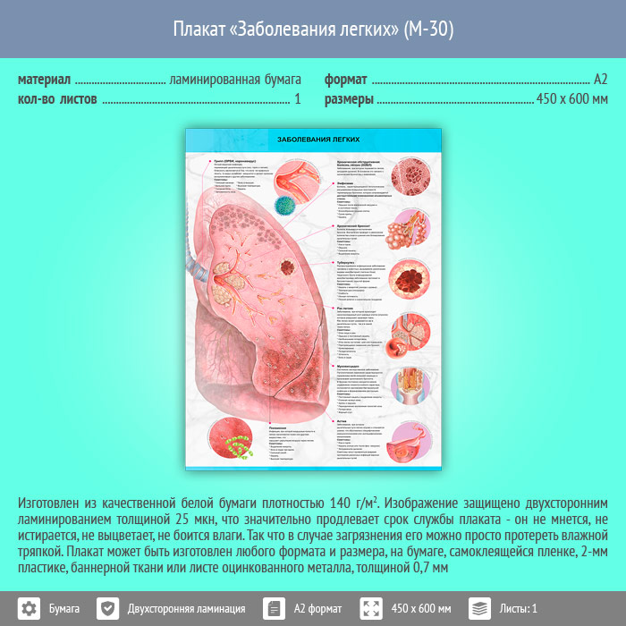 Плакат «Заболевания легких» (М-30, ламинированная бумага, А2, 1 лист) в Тюмени купить