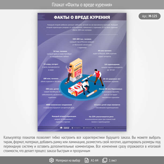 Плакат «Факты о вреде курения» (М-125, 1 лист) в Тюмени купить