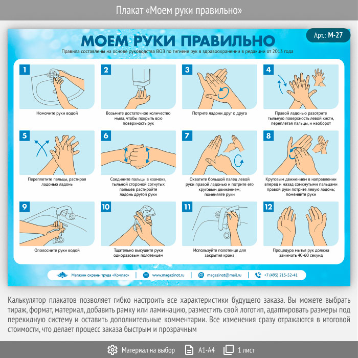 Плакат «Моем руки правильно» (М-27, 1 лист) в Тюмени купить
