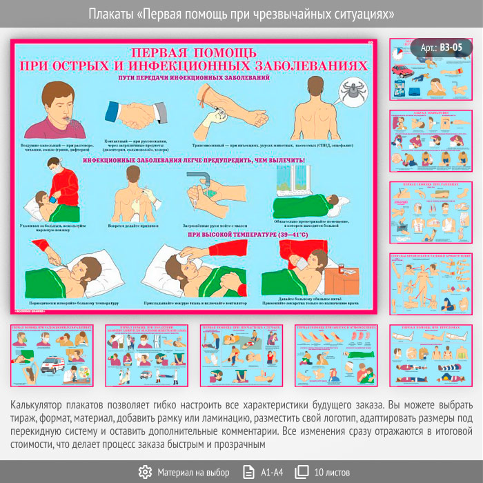 Плакаты «Первая помощь при чрезвычайных ситуациях» (ВЗ-05, 10 листов) в Тюмени купить