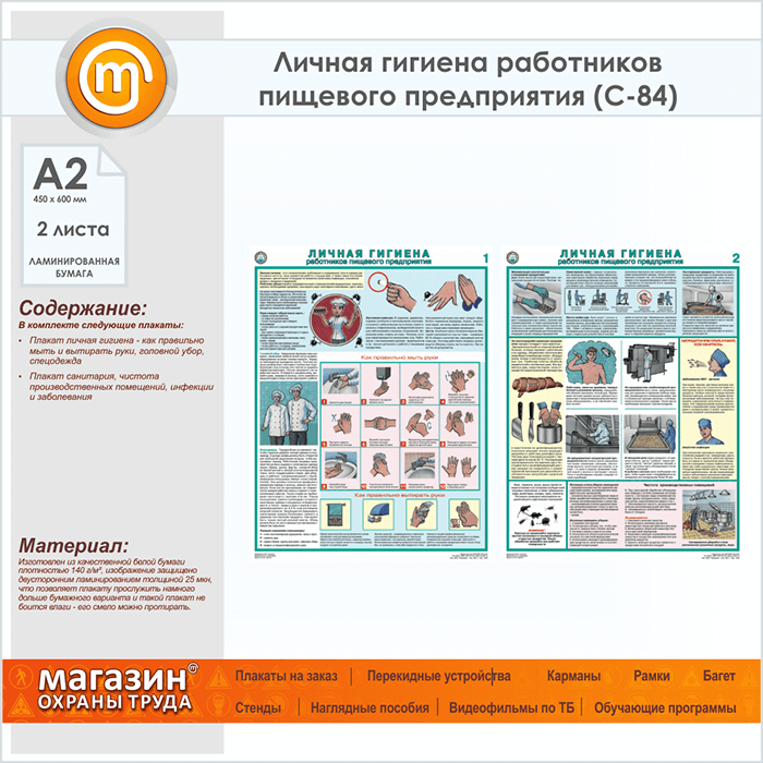 Плакаты «Личная гигиена работников пищевого предприятия» (С-84, ламинированная бумага, А2, 2 листа) в Тюмени купить