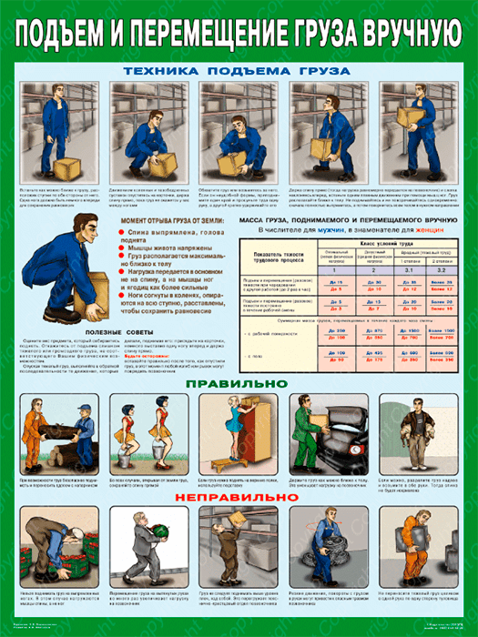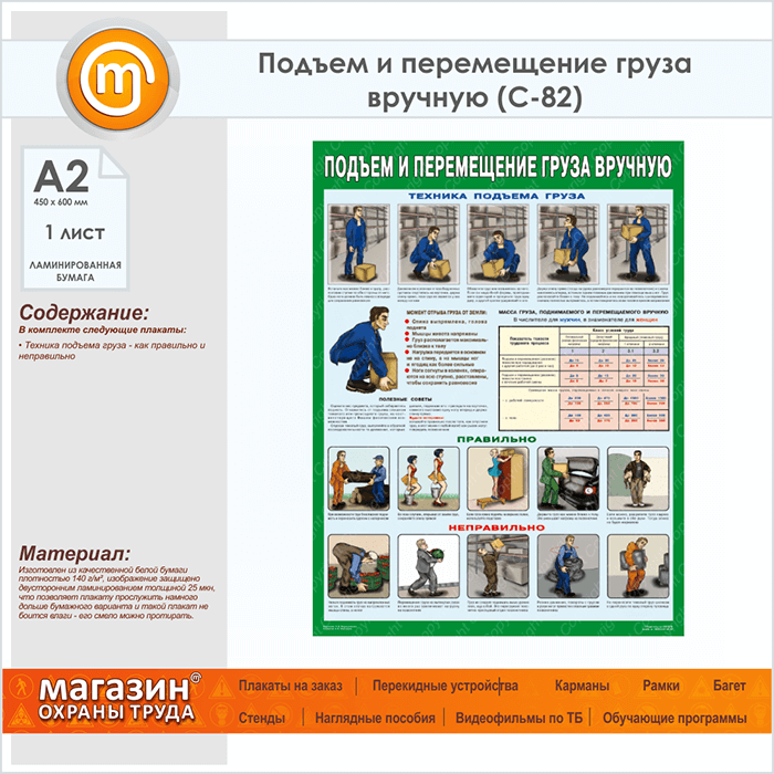 Плакат «Правила перемещения грузов вручную» (С-82, ламинированная бумага, А2, 1 лист) в Тюмени купить