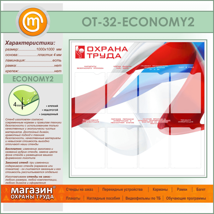 Стенд «Охрана труда» с 8 карманами (OT-32-ECONOMY2) в Тюмени купить