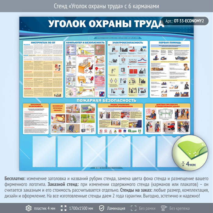 Стенд «Уголок охраны труда» с 6 карманами (OT-33-ECONOMY2) в Тюмени купить