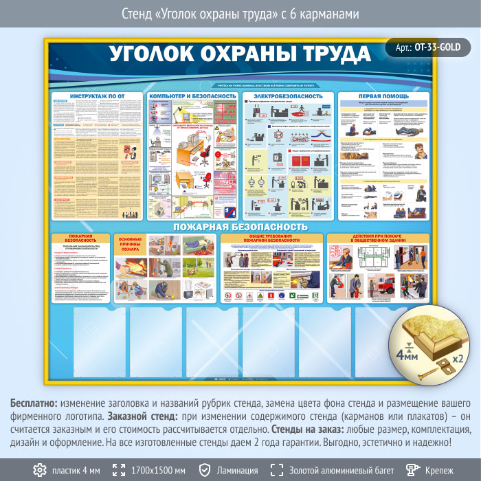 Стенд «Уголок охраны труда» с 6 карманами (OT-33-GOLD) в Тюмени купить