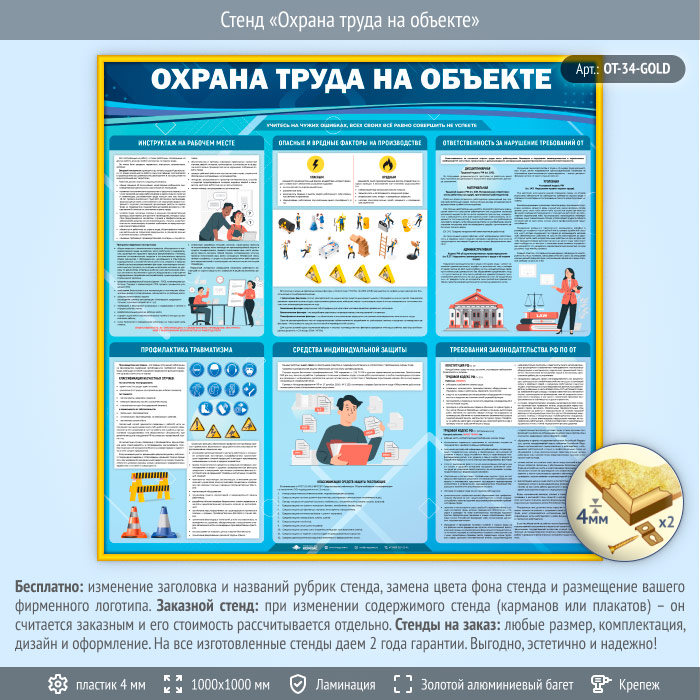 Стенд «Охрана труда на объекте» (OT-34-GOLD) в Тюмени купить