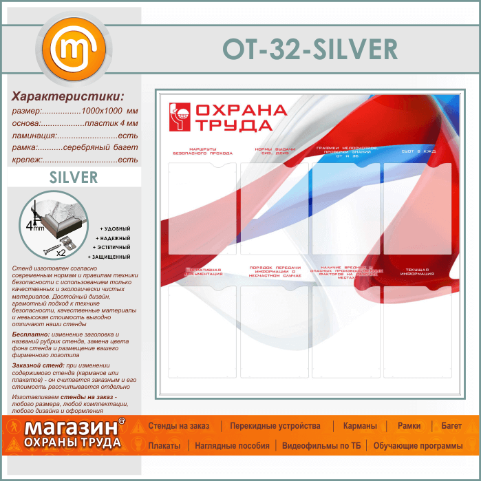 Стенд «Охрана труда» с 8 карманами (OT-32-SILVER) в Тюмени купить