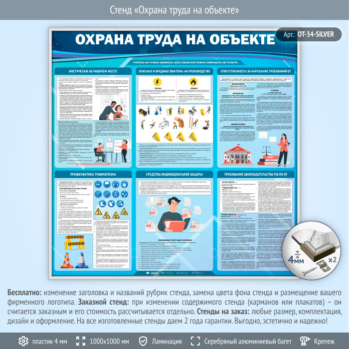 Стенд «Охрана труда на объекте» (OT-34-SILVER) в Тюмени купить
