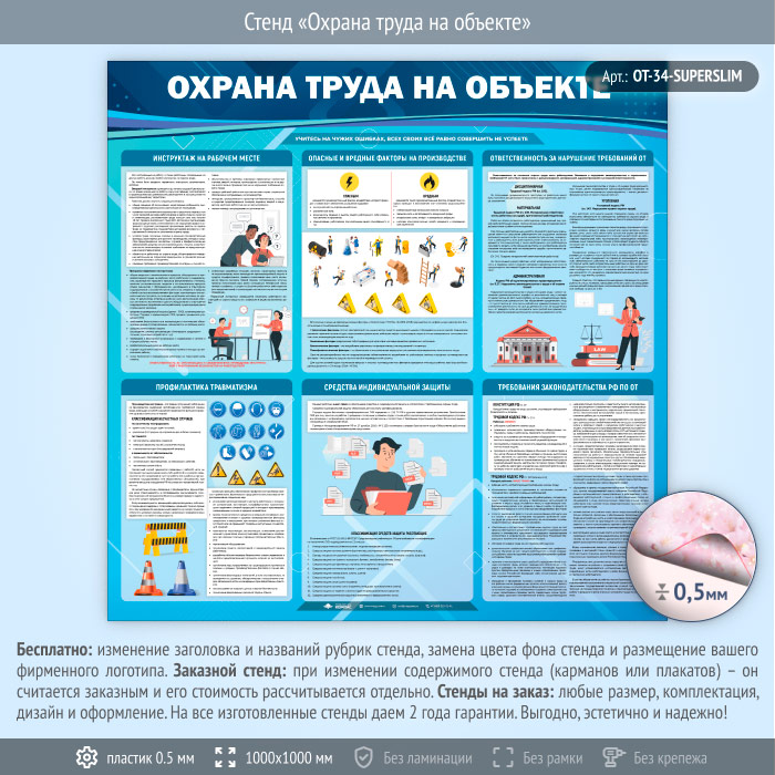 Стенд «Охрана труда на объекте» (OT-34-SUPERSLIM) в Тюмени купить