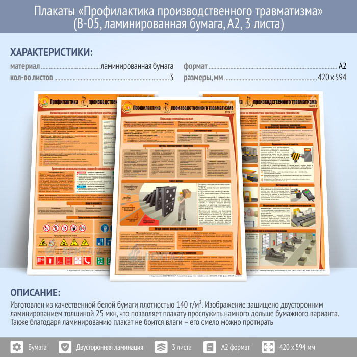 Плакаты «Профилактика производственного травматизма» (В-05, ламинированная бумага, А2, 3 листа) в Тюмени купить