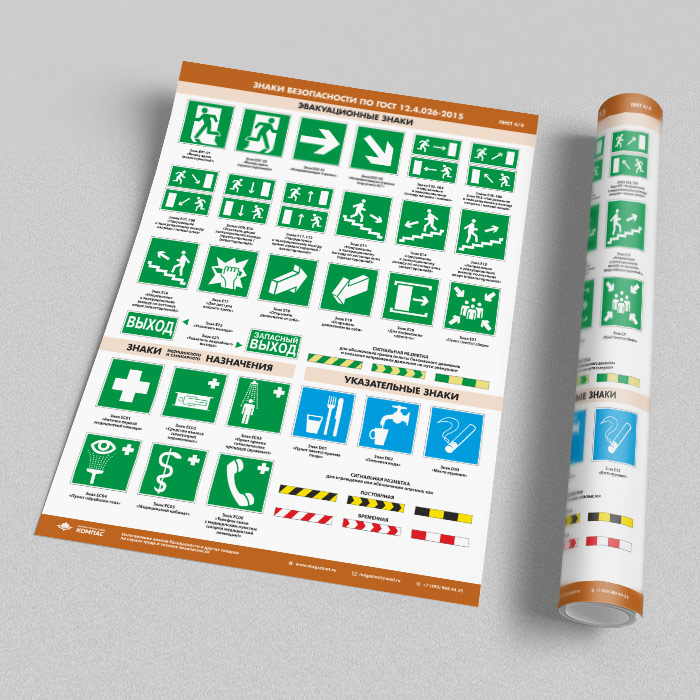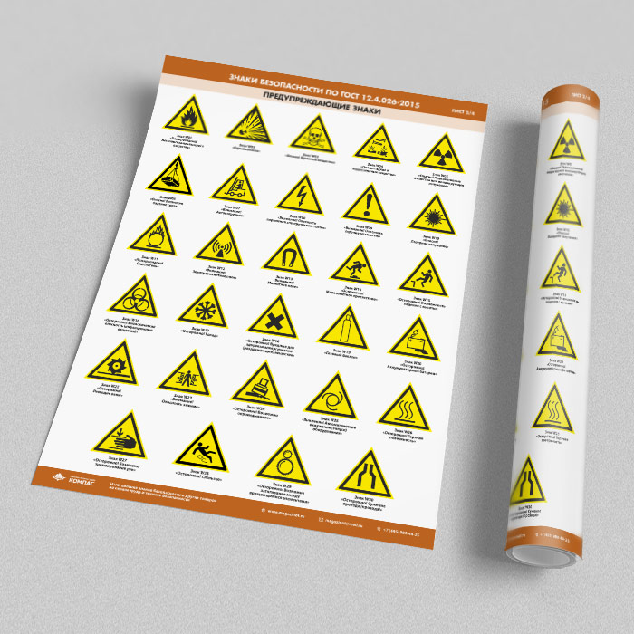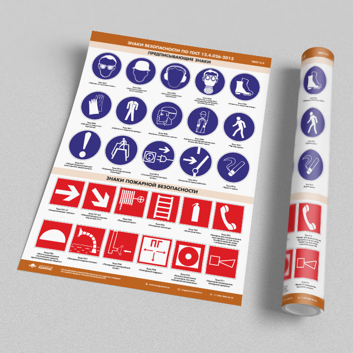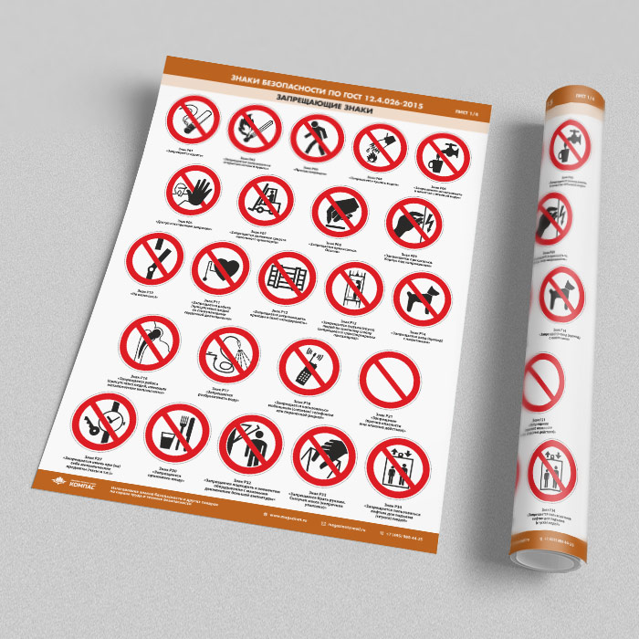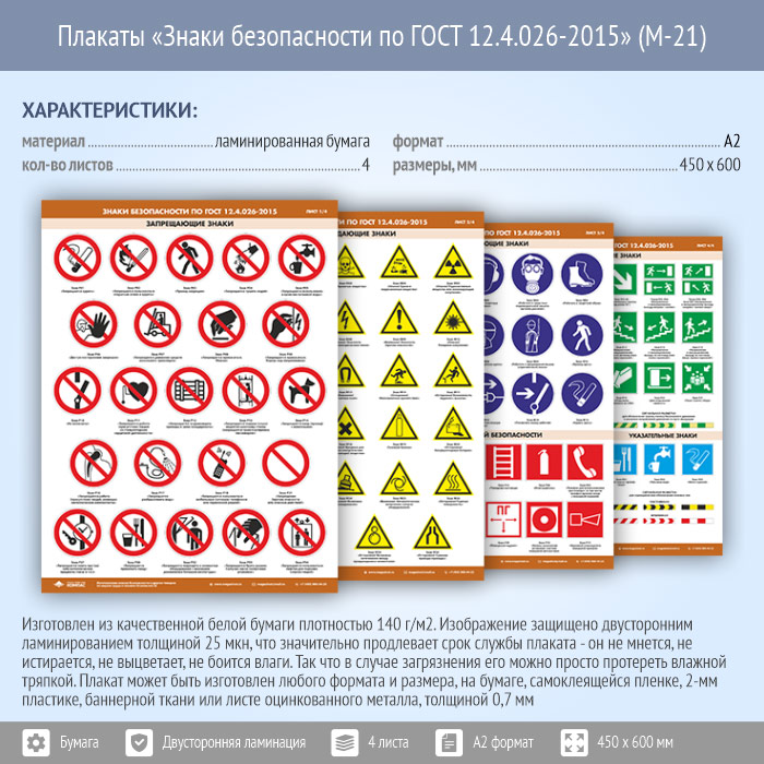 Плакаты «Знаки безопасности по ГОСТ 12.4.026-2015» (М-21, ламинированная бумага, А2, 4 листа) в Тюмени купить