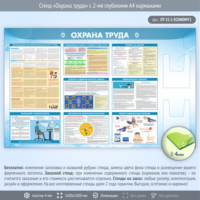 Стенд «Охрана труда» с 2-мя глубокими А4 карманами (OT-35.1-ECONOMY2) в Тюмени купить