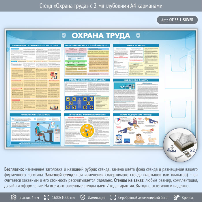 Стенд «Охрана труда» с 2-мя глубокими А4 карманами (OT-35.1-SILVER) в Тюмени купить