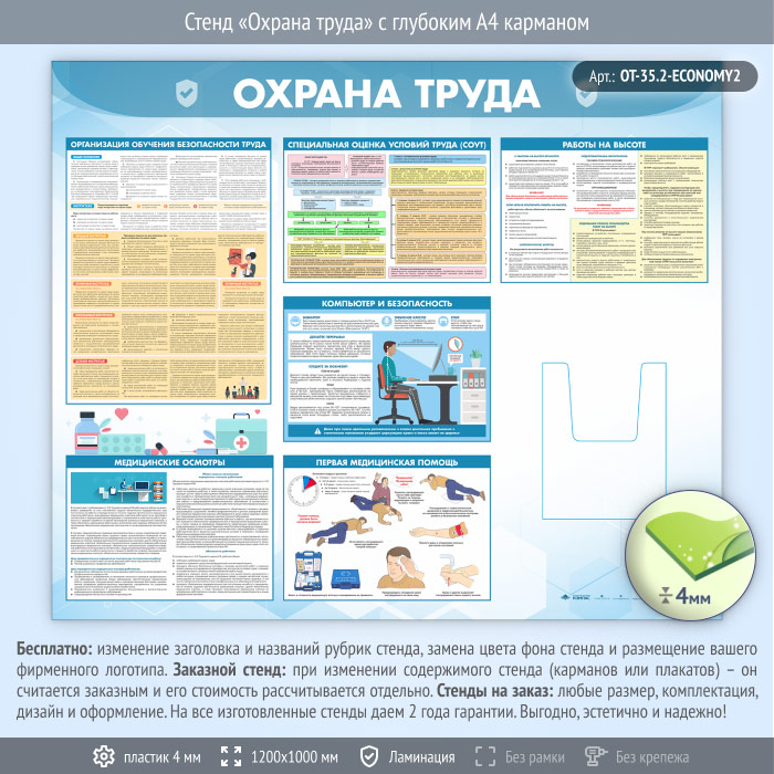 Стенд «Охрана труда» с глубоким А4 карманом (OT-35.2-ECONOMY2) в Тюмени купить