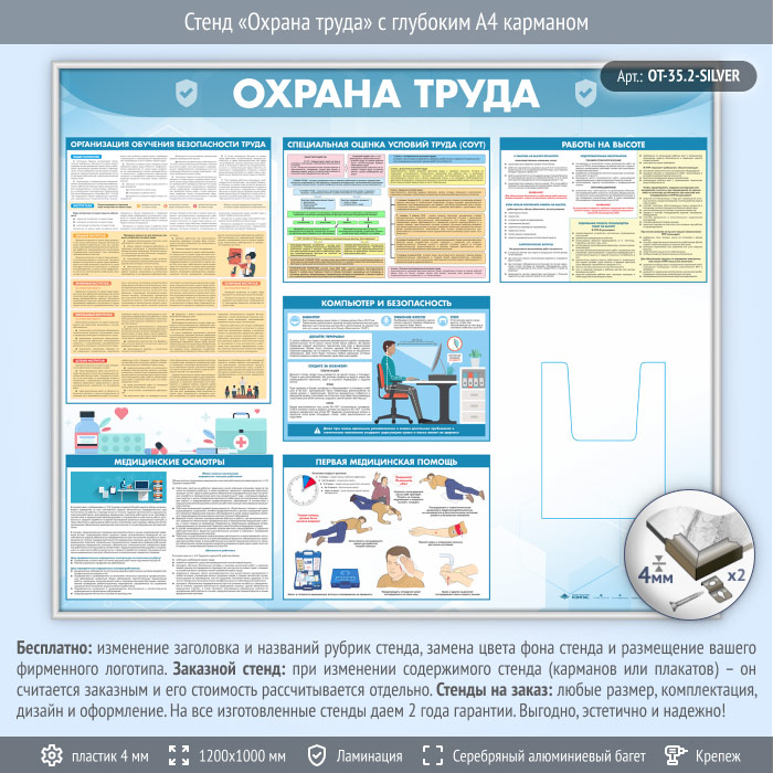 Стенд «Охрана труда» с глубоким А4 карманом (OT-35.2-SILVER) в Тюмени купить