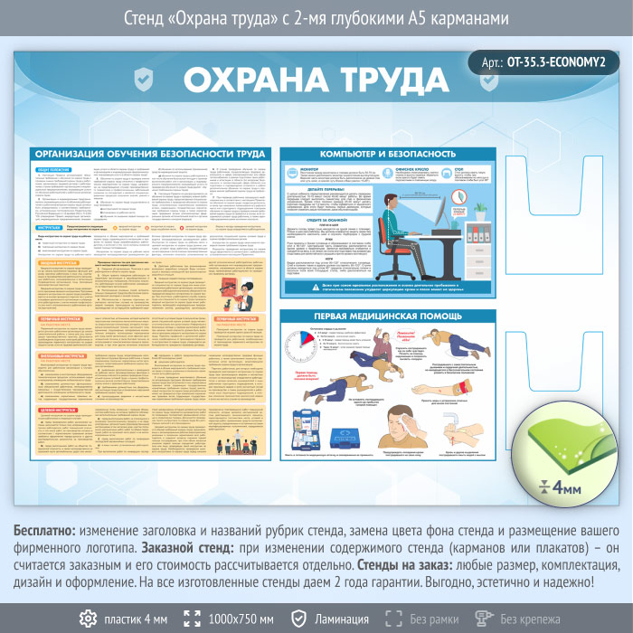 Стенд «Охрана труда» с 2-мя глубокими А5 карманами (OT-35.3-ECONOMY2) в Тюмени купить