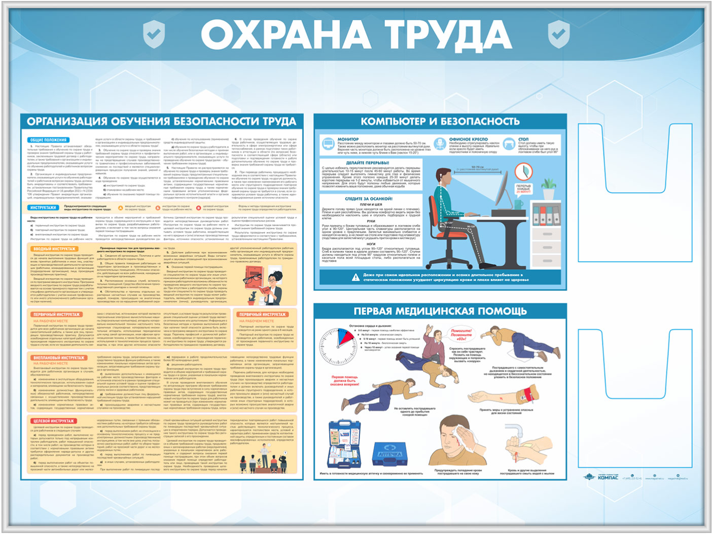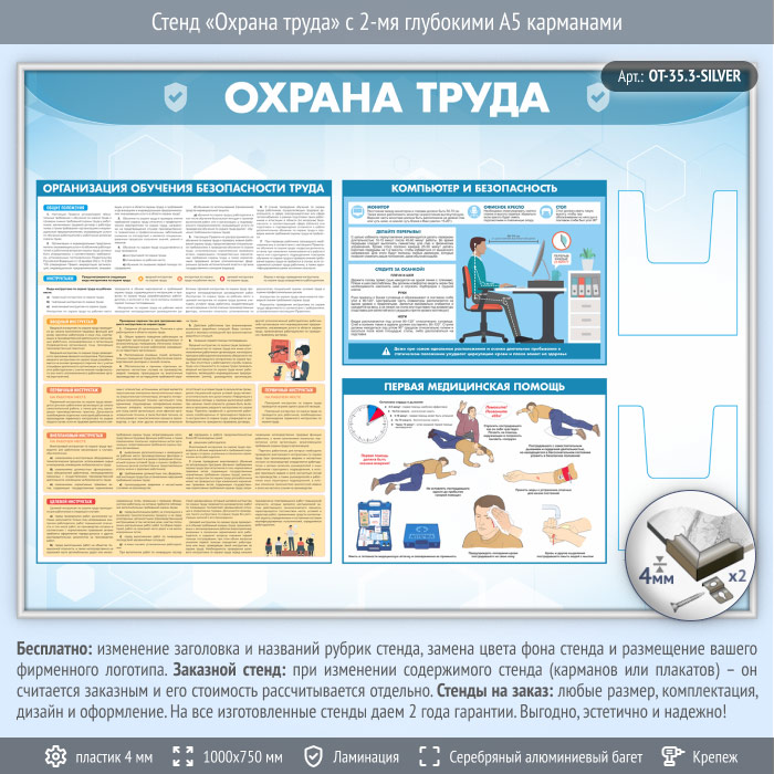 Стенд «Охрана труда» с 2-мя глубокими А5 карманами (OT-35.3-SILVER) в Тюмени купить