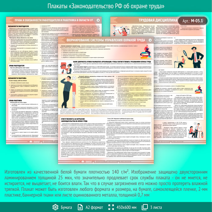 Плакаты «Законодательство РФ об охране труда» (М-05.1, ламинированная бумага, А2, 3 листа) в Тюмени купить