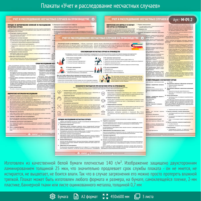 Плакаты «Учет и расследование несчастных случаев» (М-09.2, ламинированная бумага, А2, 3 листа) в Тюмени купить