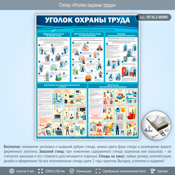 Стенд «Уголок охраны труда» (OT-36.2-SILVER) в Тюмени купить