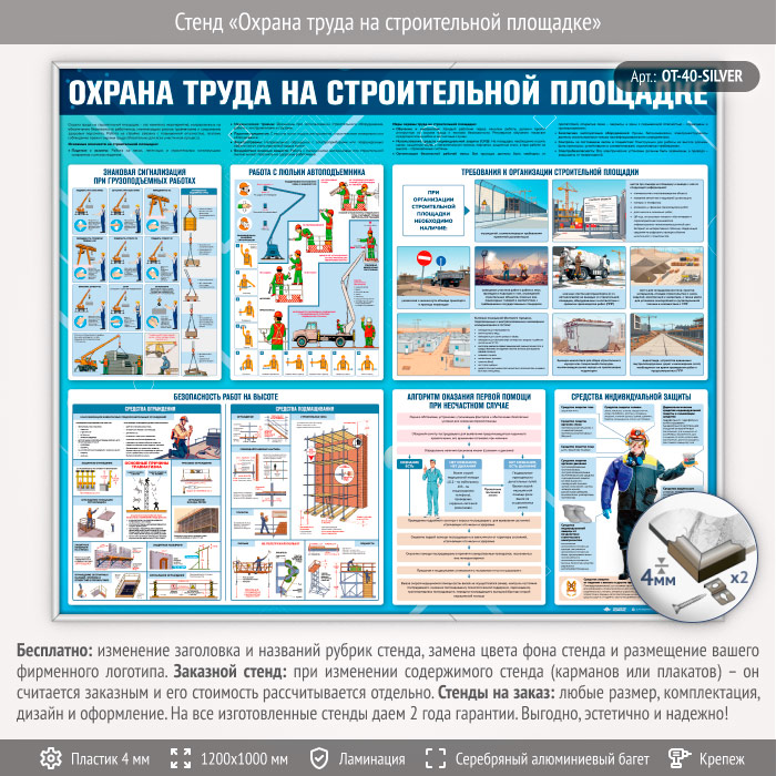 Стенд «Охрана труда на строительной площадке» (OT-40-SILVER) в Тюмени купить
