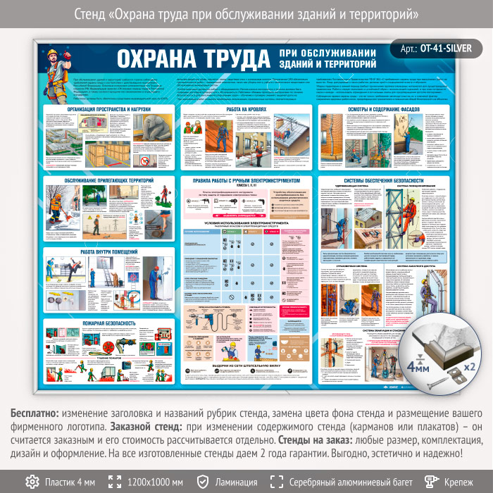 Стенд «Охрана труда при обслуживании зданий и территорий» (OT-41-SILVER) в Тюмени купить