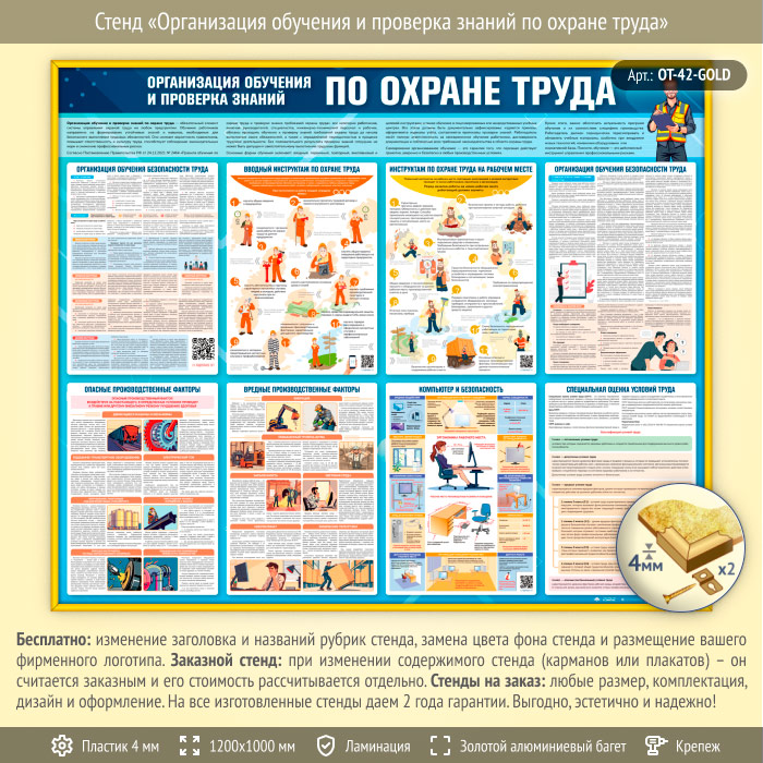 Стенд «Организация обучения и проверка знаний по охране труда» (OT-42-GOLD) в Тюмени купить