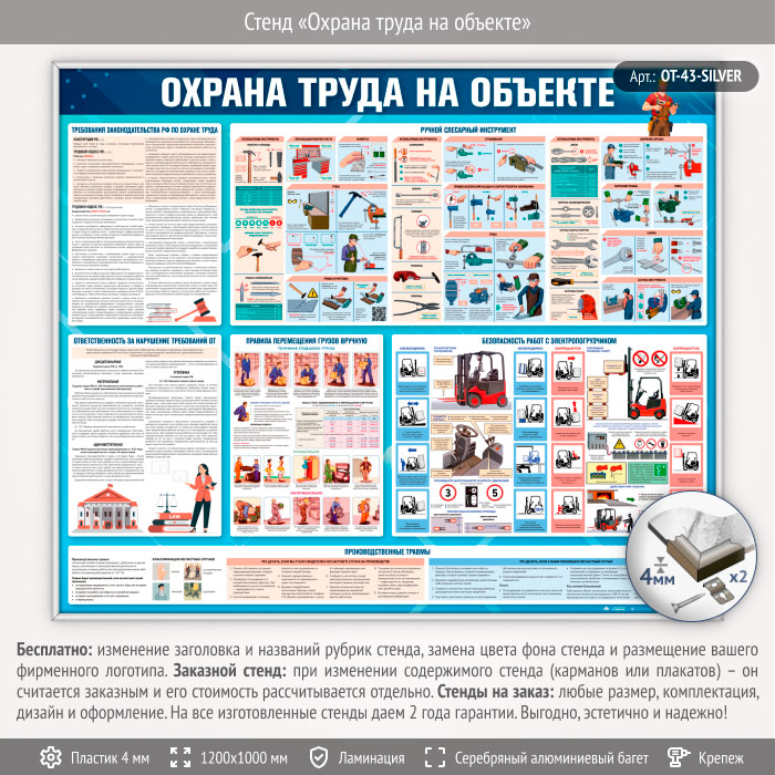 Стенд «Охрана труда на объекте» (OT-43-SILVER) в Тюмени купить
