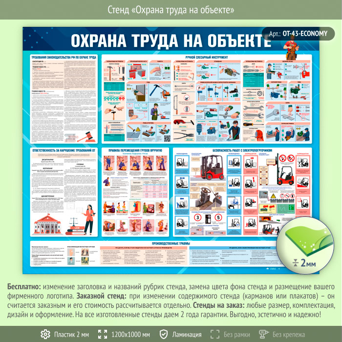 Стенд «Охрана труда на объекте» (OT-43-ECONOMY) в Тюмени купить