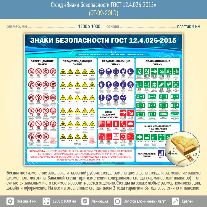 Стенд «Знаки безопасности ГОСТ 12.4.026-2015» (OT-09-GOLD) в Тюмени купить