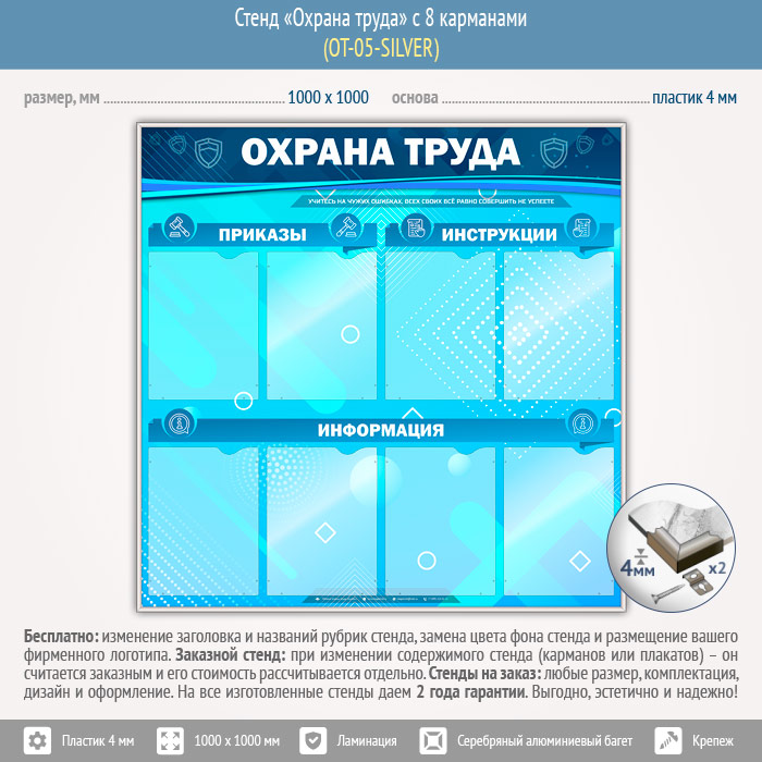 Стенд «Охрана труда» с 8 карманами (OT-05-SILVER) в Тюмени купить