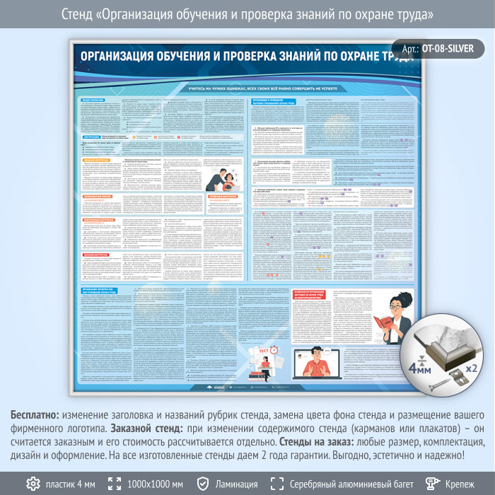 Стенд «Организация обучения и проверка знаний по охране труда» (OT-08-SILVER) в Тюмени купить