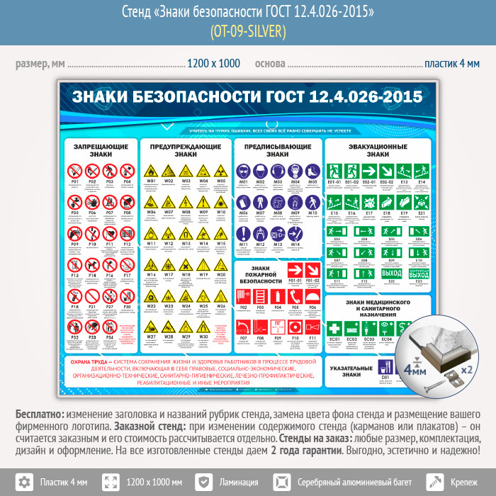 Стенд «Знаки безопасности ГОСТ 12.4.026-2015» (OT-09-SILVER) в Тюмени купить