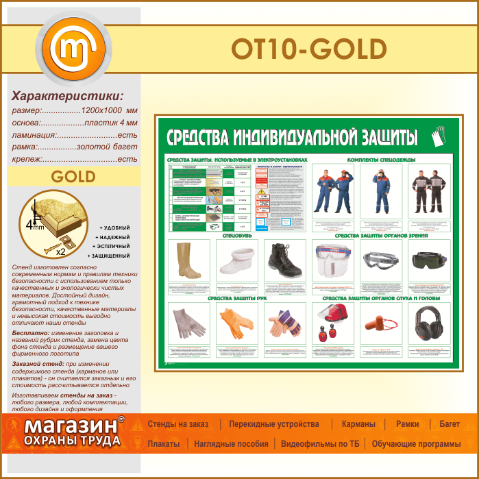 Стенд «Средства индивидуальной защиты» (OT-10-GOLD) в Тюмени купить