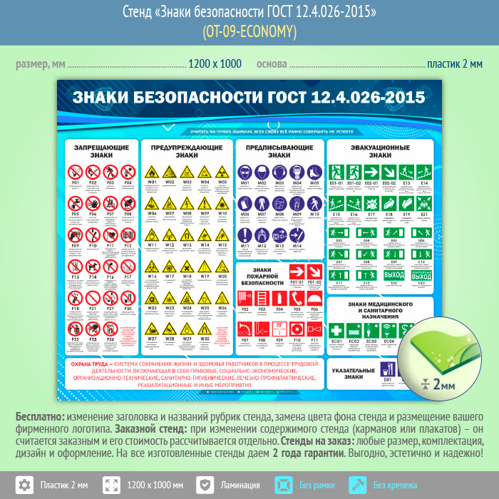 Стенд «Знаки безопасности ГОСТ 12.4.026-2015» (OT-09-ECONOMY) в Тюмени купить