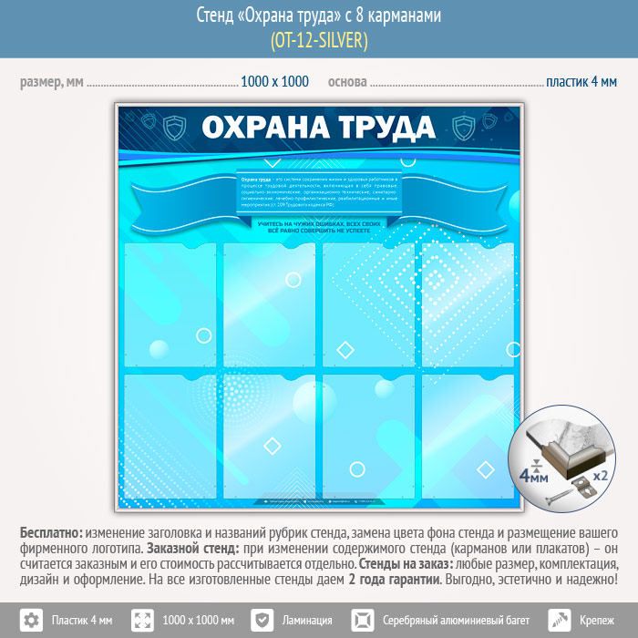 Стенд «Охрана труда» с 8 карманами (OT-12-SILVER) в Тюмени купить