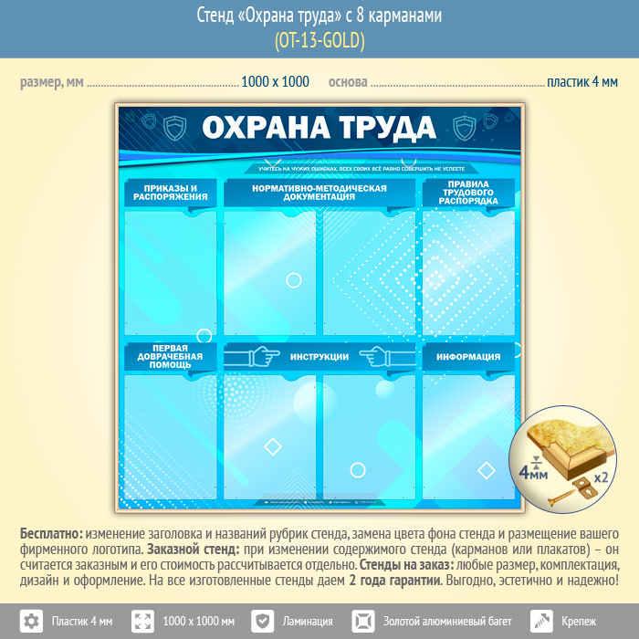 Стенд «Охрана труда» с 8 карманами (OT-13-GOLD) в Тюмени купить